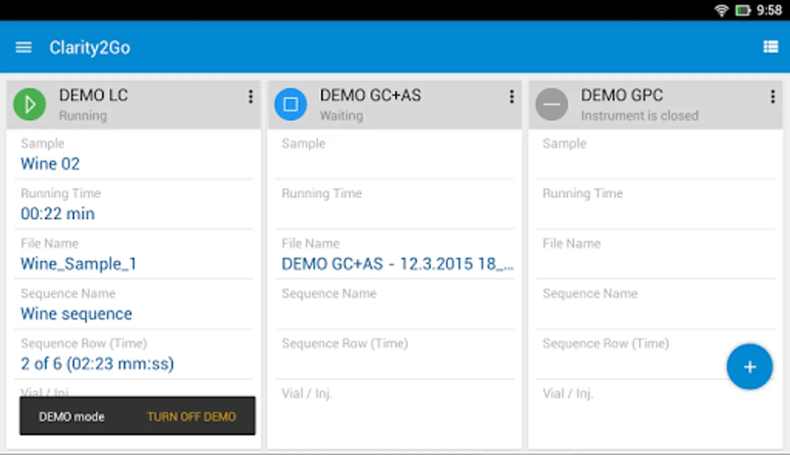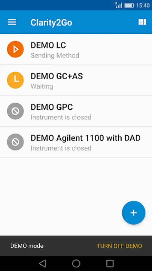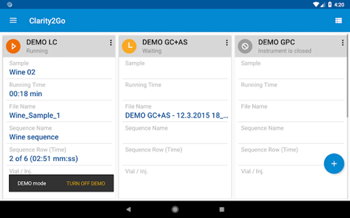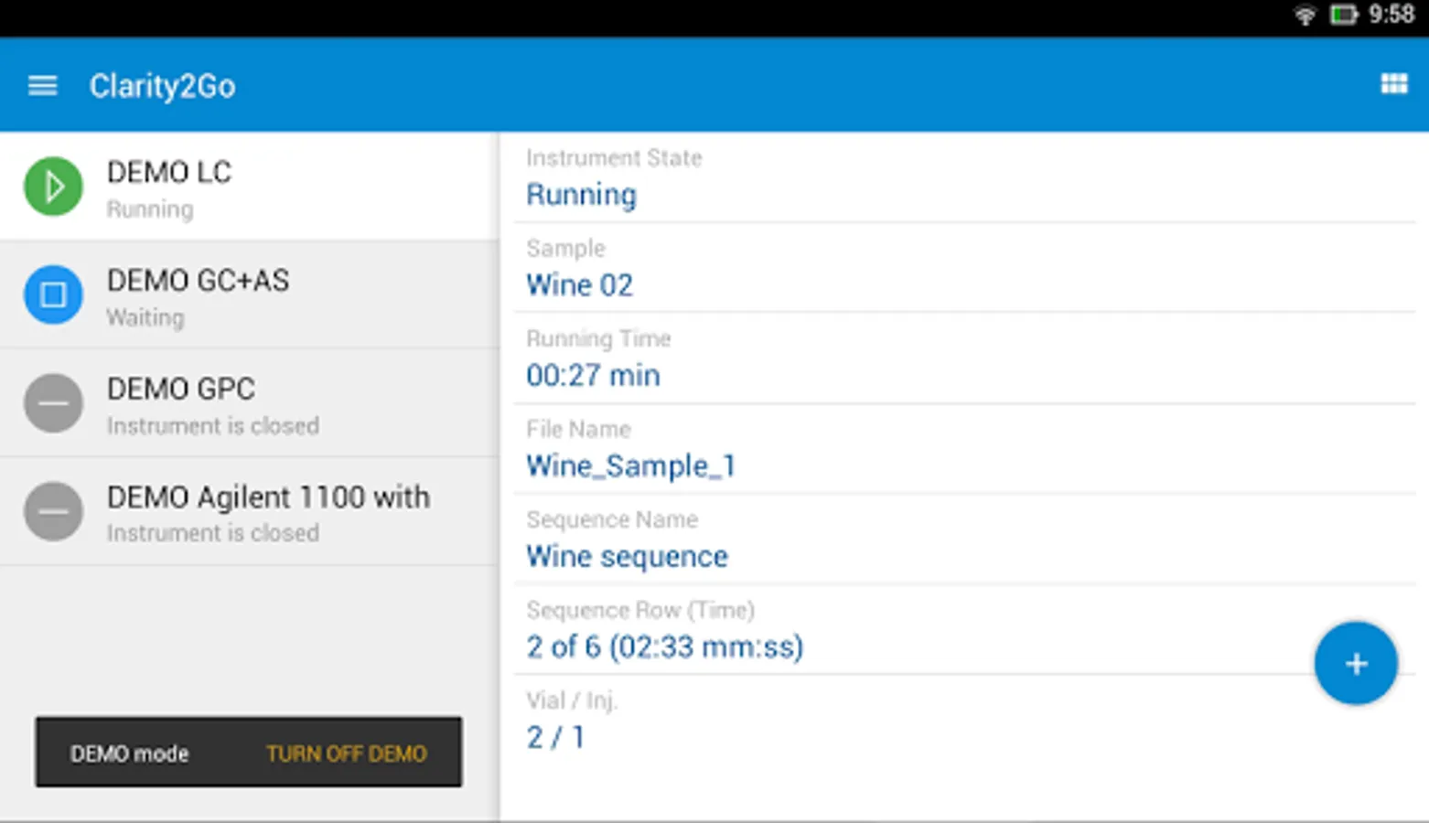 The application allows you to monitor running sequences or single analyses conveniently from your mobile device. You can monitor parameters from multiple running Clarity stations across various laboratories.
