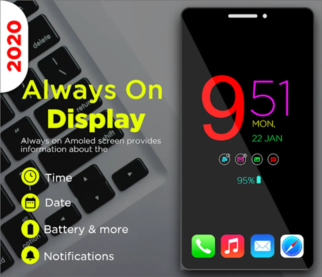 Get the Night Clock App with Always on Display Feature & Edge Light on the Screen Corner. Smart Night Clock with Live Clock Wallpaper to be set on Display. Digital & Analog Clock with Smart Night Clock feature in This Always on Display aod Clock App for Free. Edge Lighting effect while receiving the Notifications or incoming call. Set your own photo or Smart Wallpaper like a Galaxy Edge Display in this Always on Display & Edge AOD, AOE App. Edge Lighting on Amoled Display will enhance smartphone look. Best Always on Amoled is now upgraded with more display on screen special features.