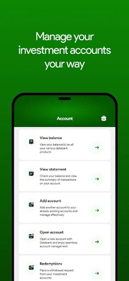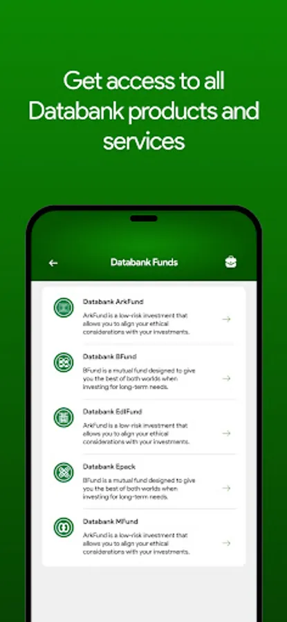 Take full control with the Databank Mobile app. Manage your investments and perform transactions seamlessly. Whether you’re at home, at the office or on-the-go, enjoy our investment services from the comfort of your own phone, safely and securely.