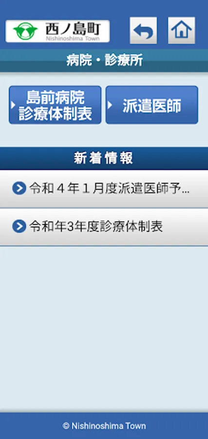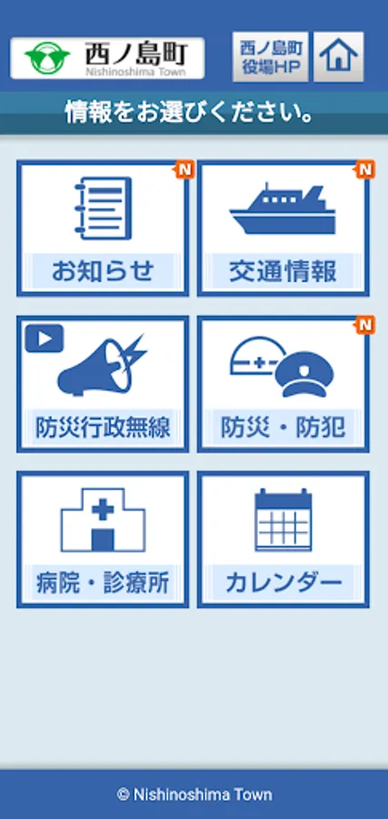 In "Nishinoshima cho information application", you can see notice from the town, disaster prevention information, event information, traffic information, hospital / clinic information etc.