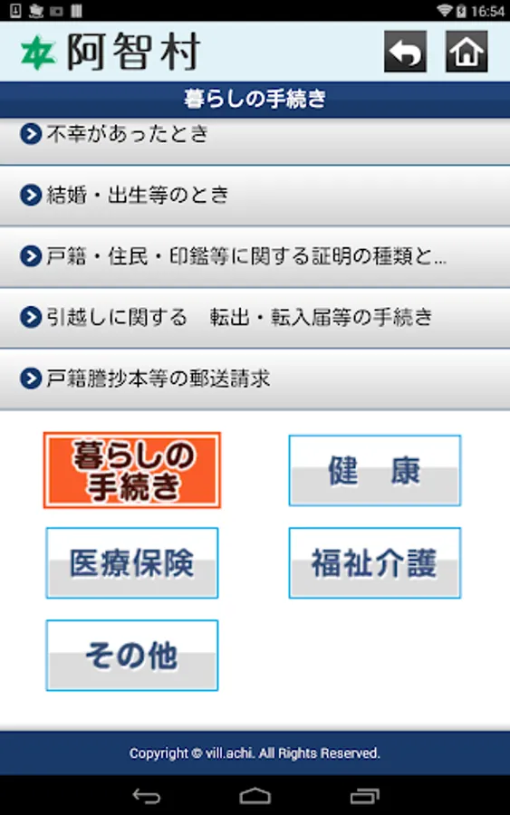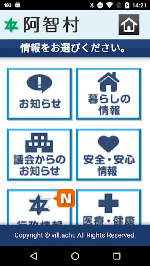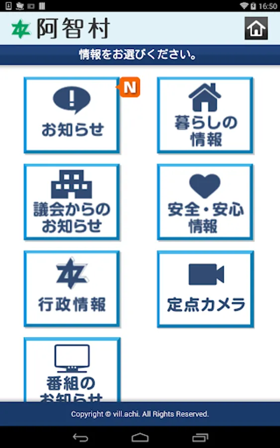 News from the village, safe and secure information, life information, such as timetables and garbage calendar, weather information, condolence information, Komichan information, you can visit, such as administrative information.