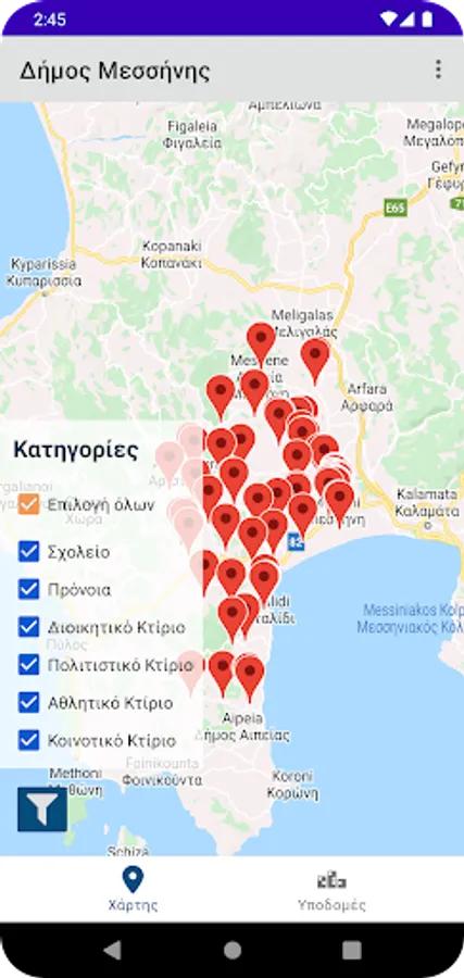 - map with the municipal buildings and facilities of the Municipality