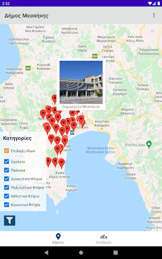 DATABUILD enables citizens to locate the municipal buildings and facilities of their Municipality on the map, see basic information about them and navigate to them via Google Maps. With applications like this, the local government of Greece is evolving, as it now includes the digital world in its operation.