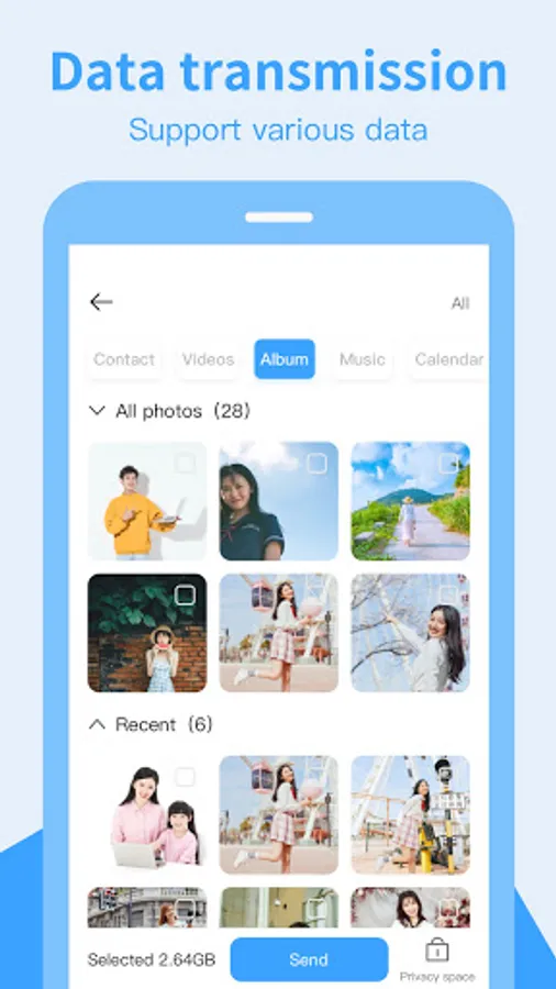 One-click transmission of pictures, video, contacts, music, calendar and so on;