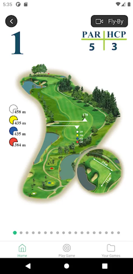Distance measurement to the pin or a selected point on the golf course with the GPS system