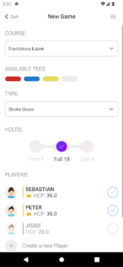 The DATAcrea app offers everything you need for a round of golf at Golf Club Františkovy Lázně.