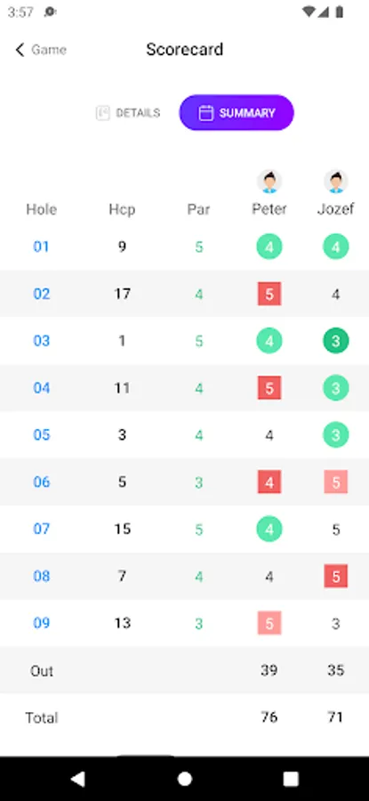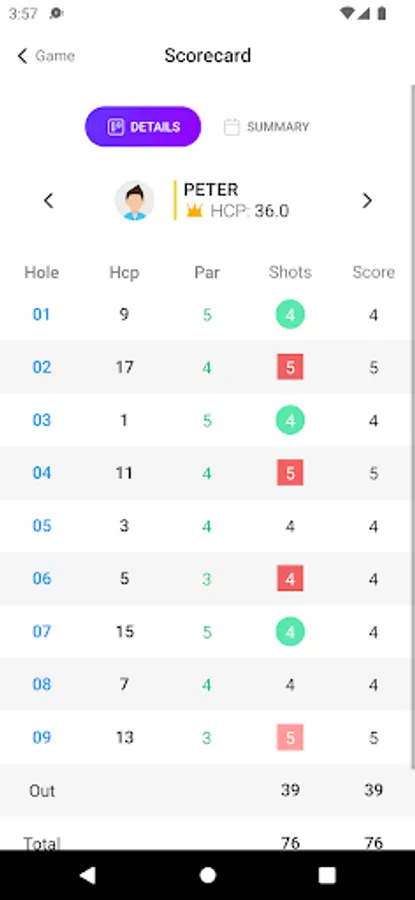 - Score card and save rounds of golf