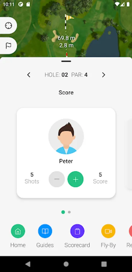 Distance measurement to the pin or a selected point on the golf course with the GPS system