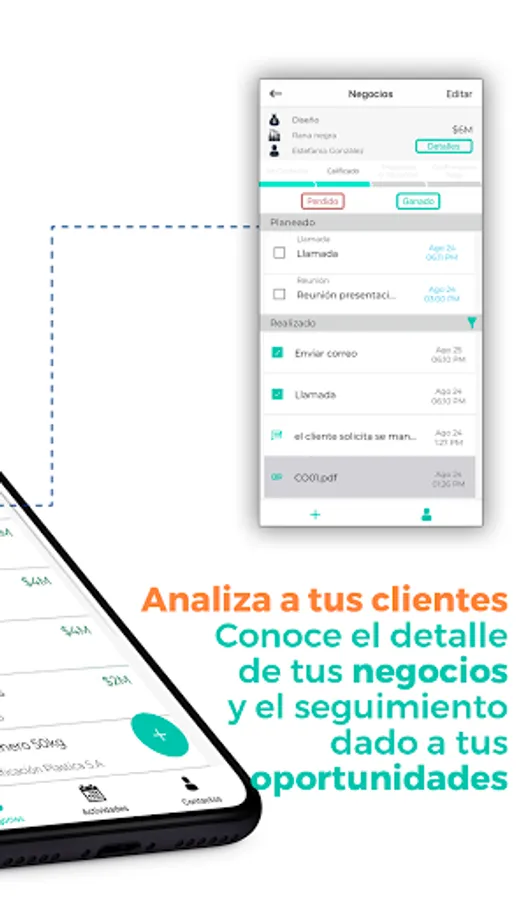 DataCRM Móvil is the application that allows you to optimize your commercial process in a simple way. Access all of your business opportunities, organize and manage them according to the sales phase they are in.