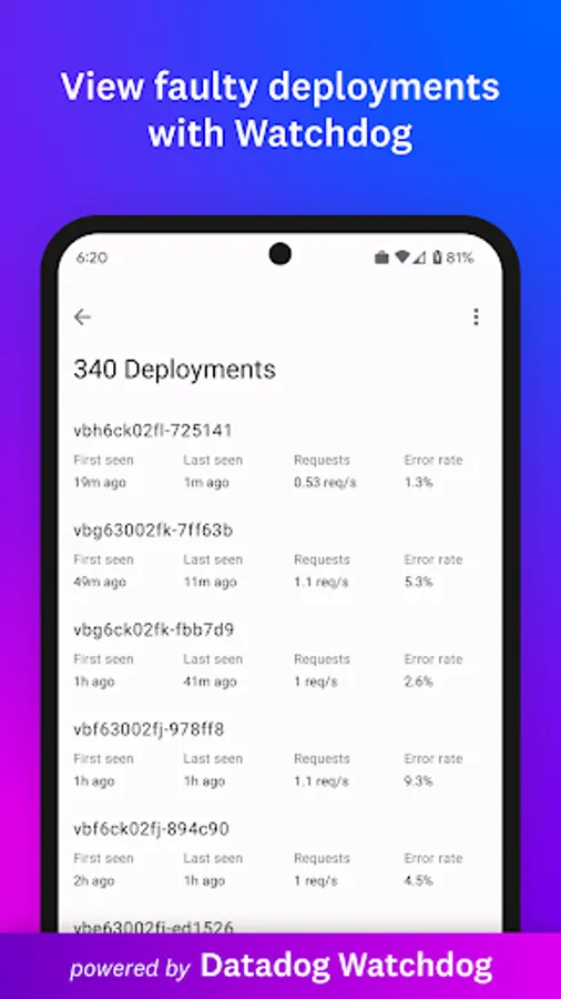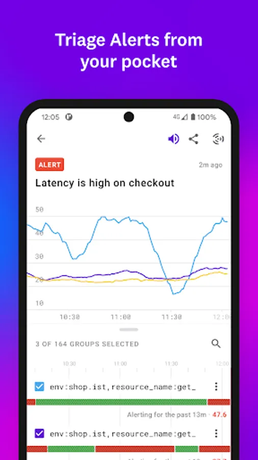 The Datadog mobile app provides real-time visibility into critical alerts, incidents, and application performance metrics across your entire environment directly from your phone or tablet.