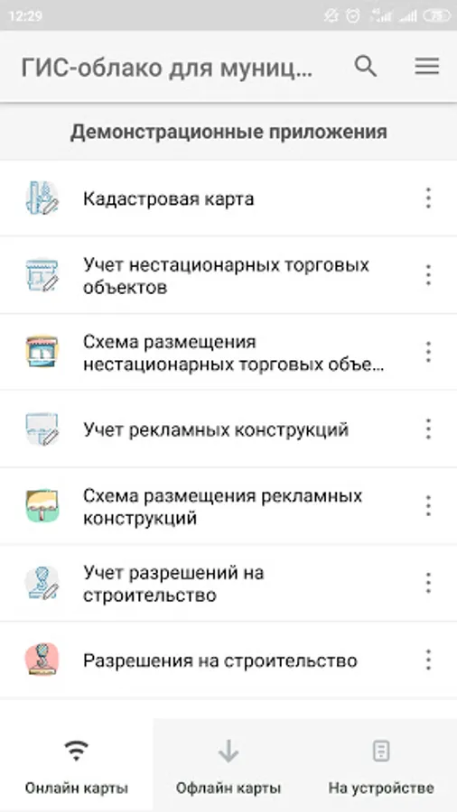 Determination of the current location using the built-in navigation system GLONASS / GPS of a mobile device, setting the visibility of layers, changing the scale, identifying objects, recording tracks along the way.
