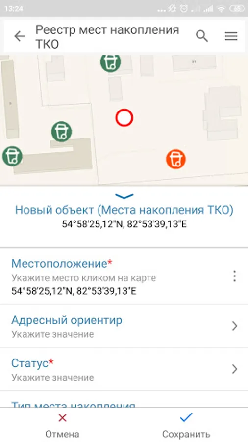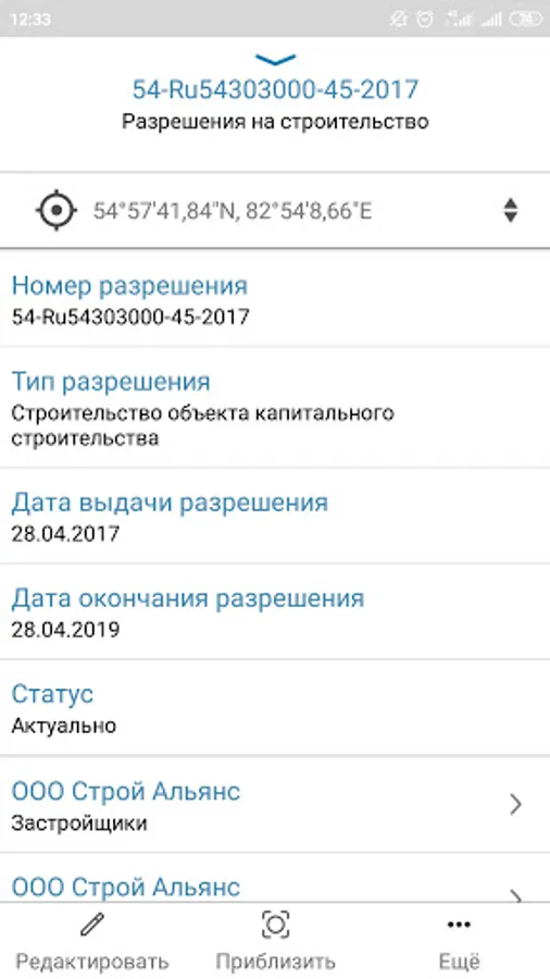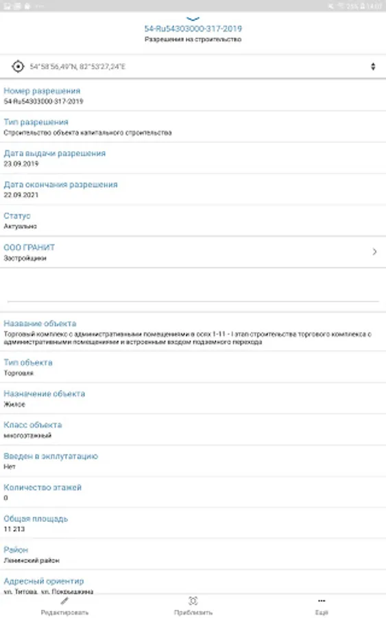 Search for objects by attributes and coordinates with the ability to bring the map closer to the found objects, view information about objects in identification cards.