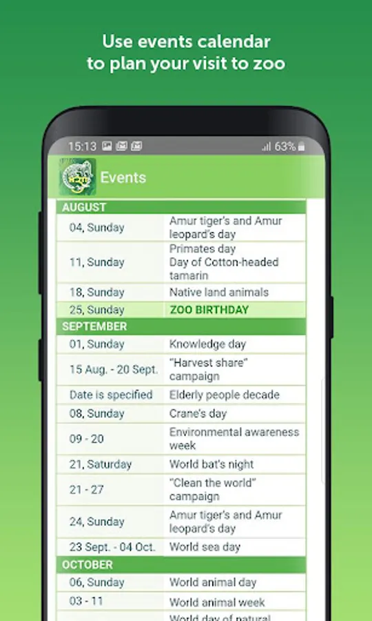 - Use event calendar to plan your visit to zoo