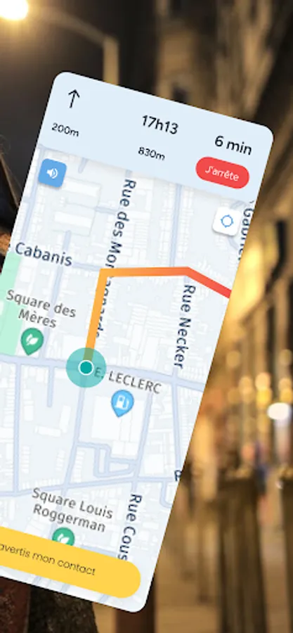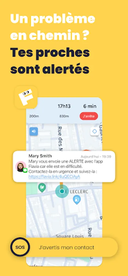 In the event of an incident, send alerts to your emergency contacts, who can geolocate you in real time and come to your aid