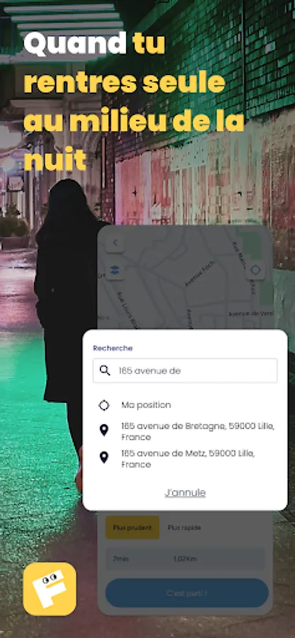 The app to get around safely without fear of walking alone in the street. You are shown safe routes to your destinations, you can share your trips and send alerts.
