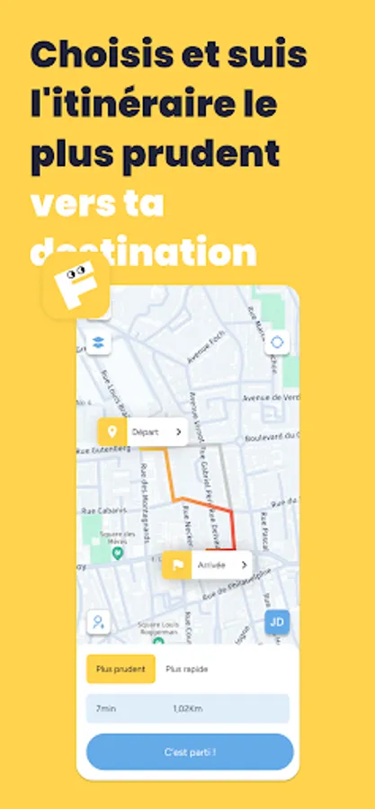 - Enter your destination and let Flavia guide you on the safest route to get there, at any time of the day or night.