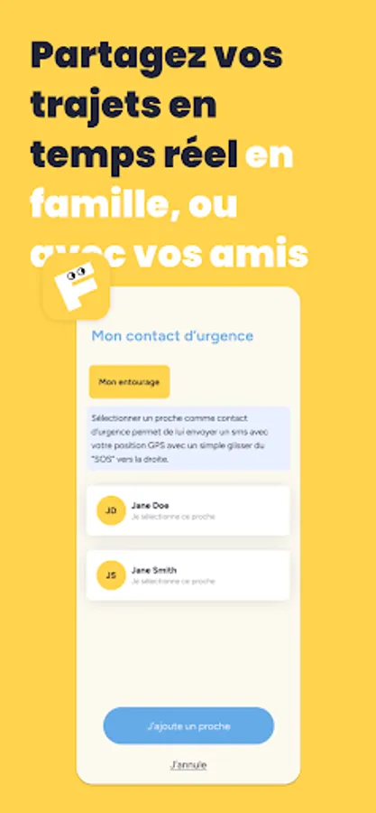 • Download the app for free, create your account and choose your trip sharing and alert contacts