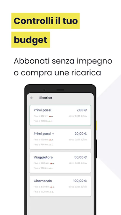 - You pay ONLY for the kilometers you travel: no trips, no expenses.