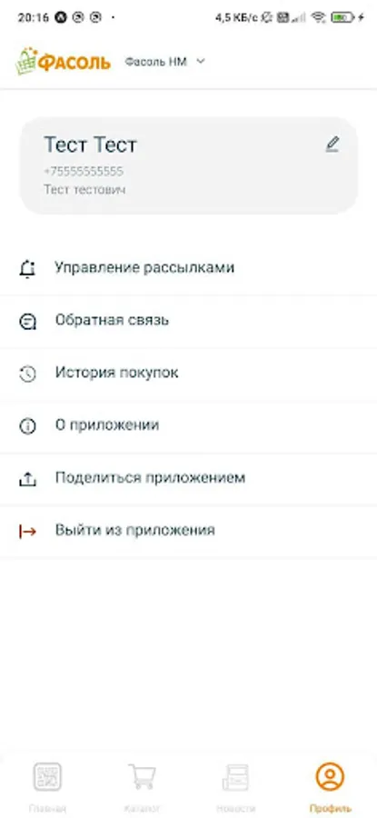 Use the mobile application of the loyalty program as a plastic, discount card in Fasol Krasnogorsk stores. Track savings, view purchase history, and send wishes about store operations.