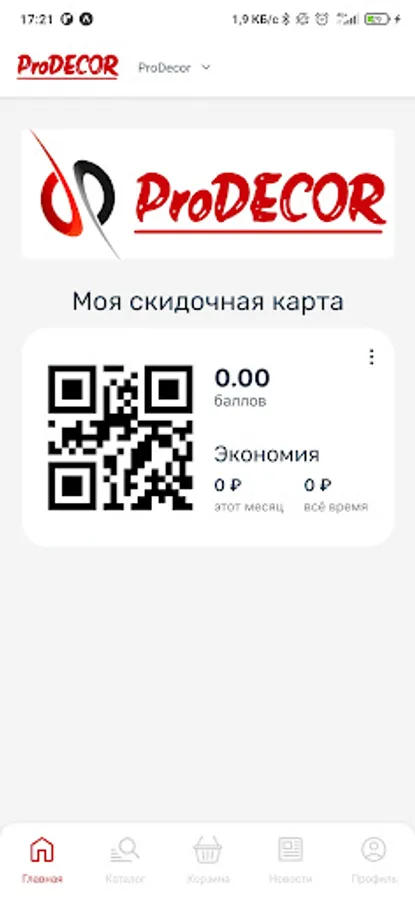 Use the mobile application of the loyalty program as a plastic, discount card in ProDecor stores. Track savings, view purchase history, and send wishes about store operations.