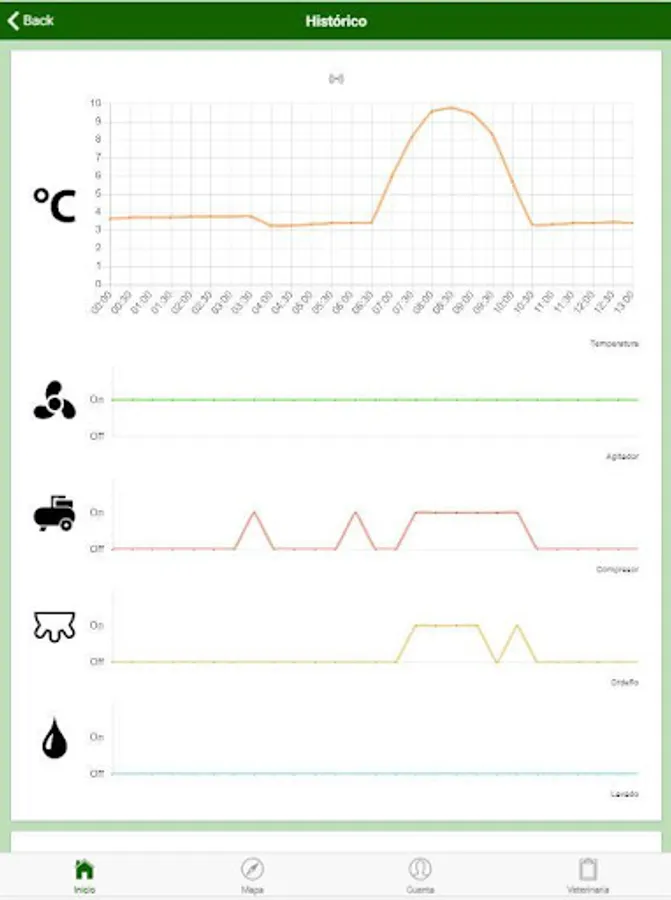 DataLact is an application that complements a sophisticated electronic monitoring system in real time. It allows to quickly and easily visualize the current temperature of milk tanks, as well as the operating status of the different processing machines. You can also use it as a statistical analysis tool through a powerful historical viewer. It also has a system of instantaneous alarms, which notify the user when a problem occurs. A greater also allows to take a centralized control of electrical consumption and use as a tool for the analysis and veterinary control of milk.