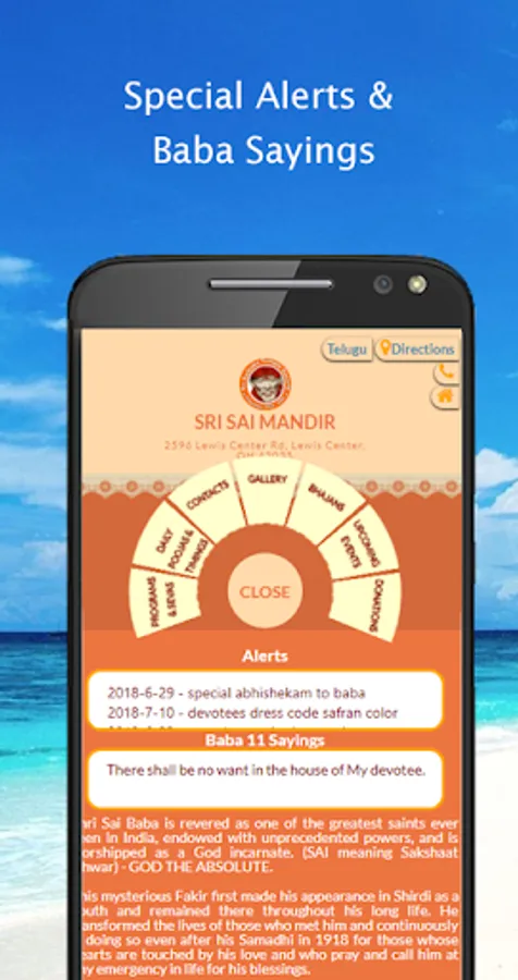 An app designed for shri sai baba temple columbus ohio to track the daily events going on