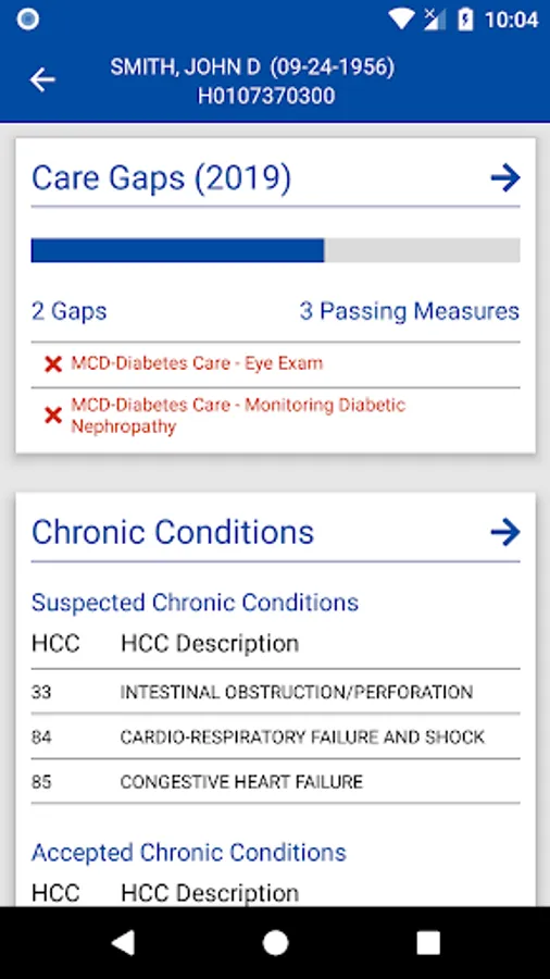 CareBook ScoreCard is designed to empower you, the provider, from the mobile perspective. From the convenience of your mobile device, you can review patient information straight from the palm of your hand. Patient information includes a customizable patient ScoreCard face sheet complete with care gaps, chronic conditions, and recent encounters cards and their accompanying details pages.