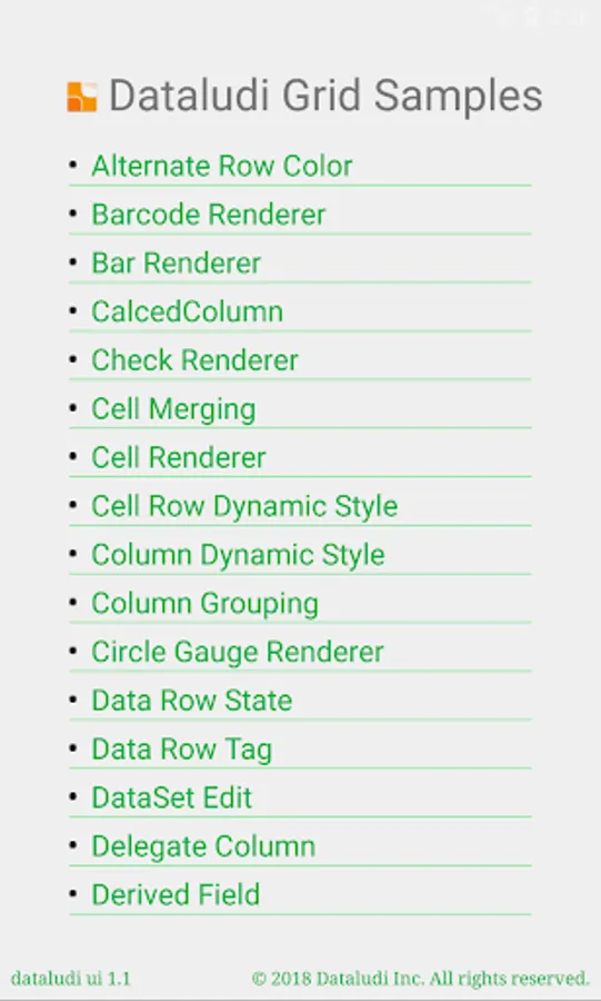 Demonstration app for Android version of Dataurdi Mobile Grid component.