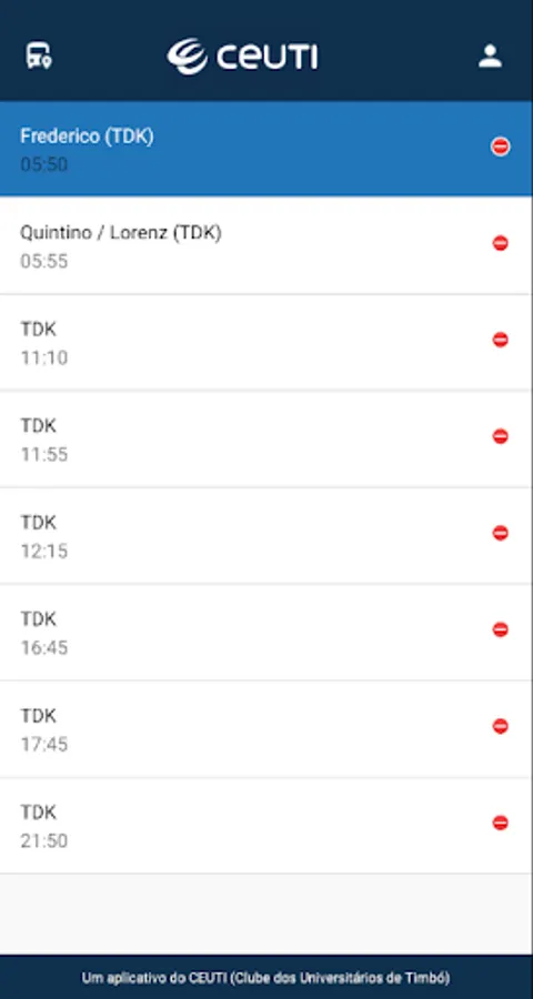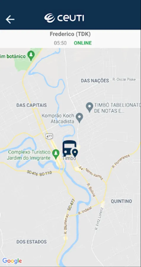 The Clube dos Universitários de Timbó (CEUTI) provides the app for members to follow in real time all available transportation vehicles.