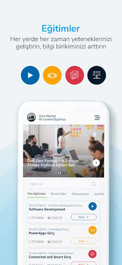 • Organize online training with video, picture, pdf content, prepare tests, trainings from wherever and whenever you want