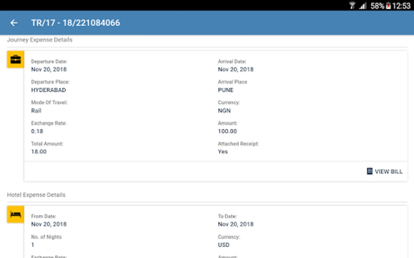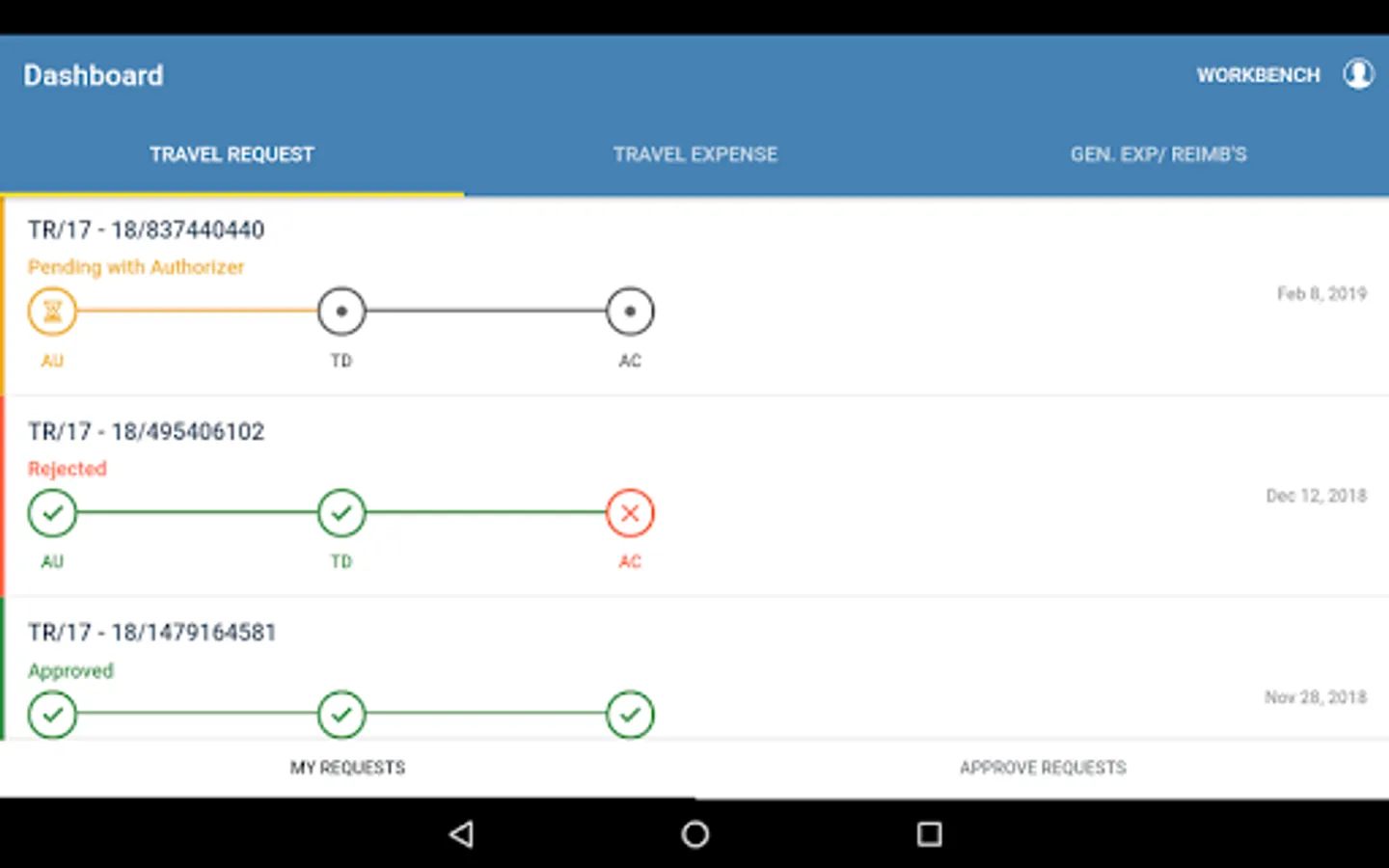 The Mobile app will enable user to raise travel requests, create of travel expense report while travelling (to avoid any discrepancies post travel), to check the current status of both travel requisition and travel expense report.