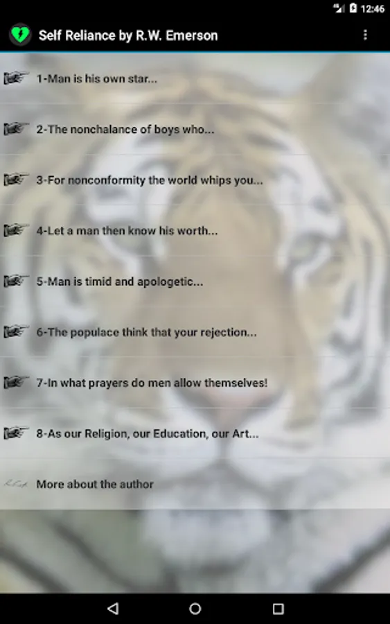 For comfort of reading, the original text has been divided in this app into 8 different menu entries.