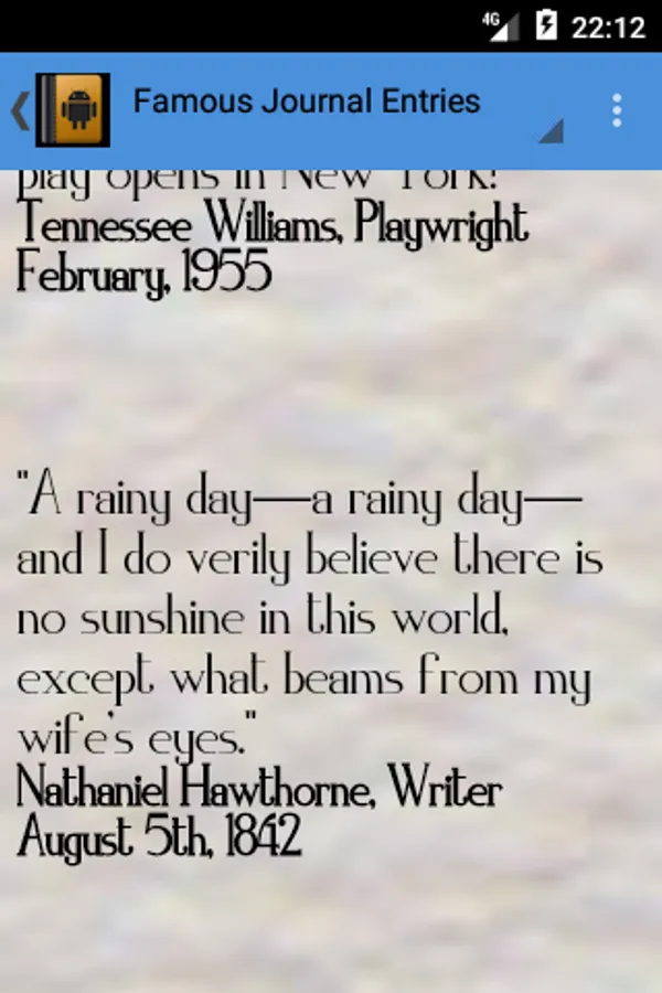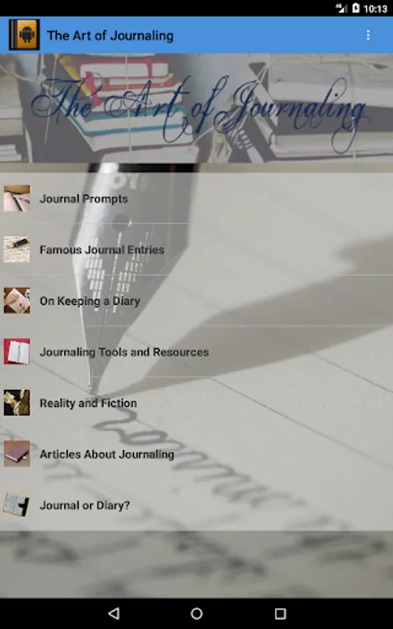 Journal writing, besides fun and useful, is also a recommendable activity that promotes a lot of healthy mental habits. If you're already writing a journal, this app will encourage you to stay on track and write more and better every day; and if you haven't started yet, these journal ideas and suggestions are sure to help you "get your feet wet". Once you start, you'll wish you had done it before...