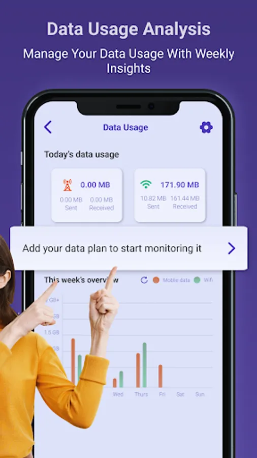 In addition to monitoring your mobile data usage, our app also tracks your Wi-Fi data usage. This can be especially useful if you have a limited data plan and want to make sure you're using Wi-Fi whenever possible to save on data costs. You can easily see how much data you're using on Wi-Fi versus mobile data, and adjust your usage accordingly.