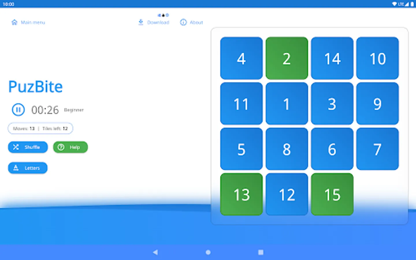 PuzBite is a is a combination puzzle that challenges a you to slide the tiles along certain routes to order them in numerical, alphabetical order or reveal the hidden picture.