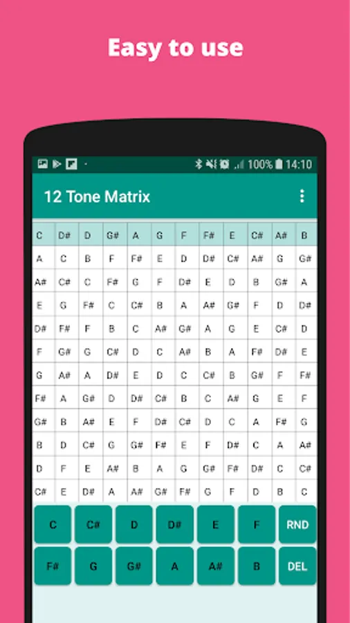 Simply enter the 12 starting tones, and the app will calculate the inversions and other forms.