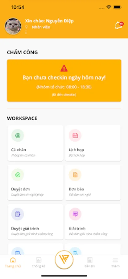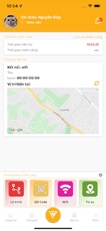 - Chấm công ( Đa dạng phương thức chấm công như: Chấm công qua mã QR Code, qua Wifi, thông qua lộ trình di chuyển hoặc chấm công từ xa,... )