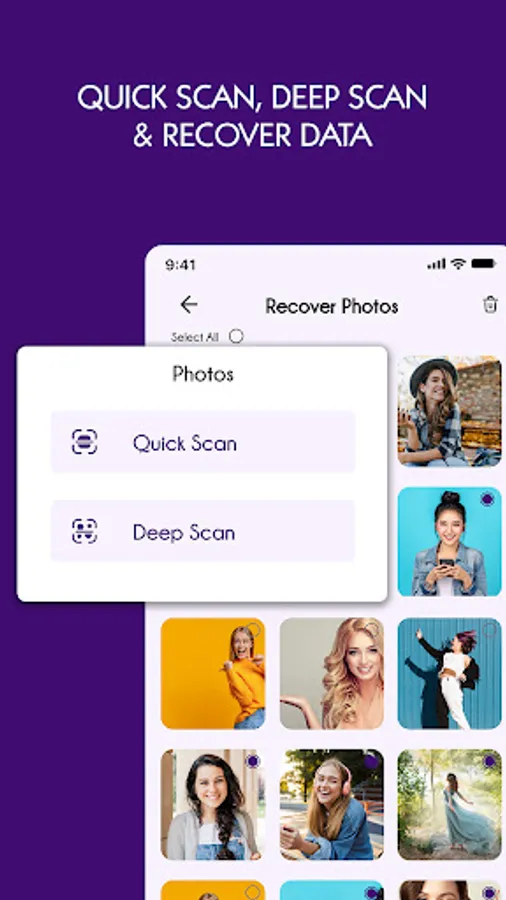 Scan your phone with the Quick Scan and restore recently deleted files.