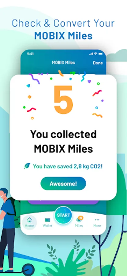 Get rewards for moving around and avoiding CO2 emissions! For every distance you cover by e-scooter, bike, e-bike or e-moped, you get MOBIX Miles!