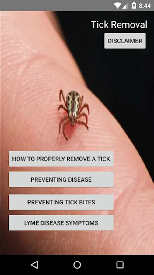 The information provided by this app is meant for human use only. This app is not a guide for removing ticks from pets or other animals.