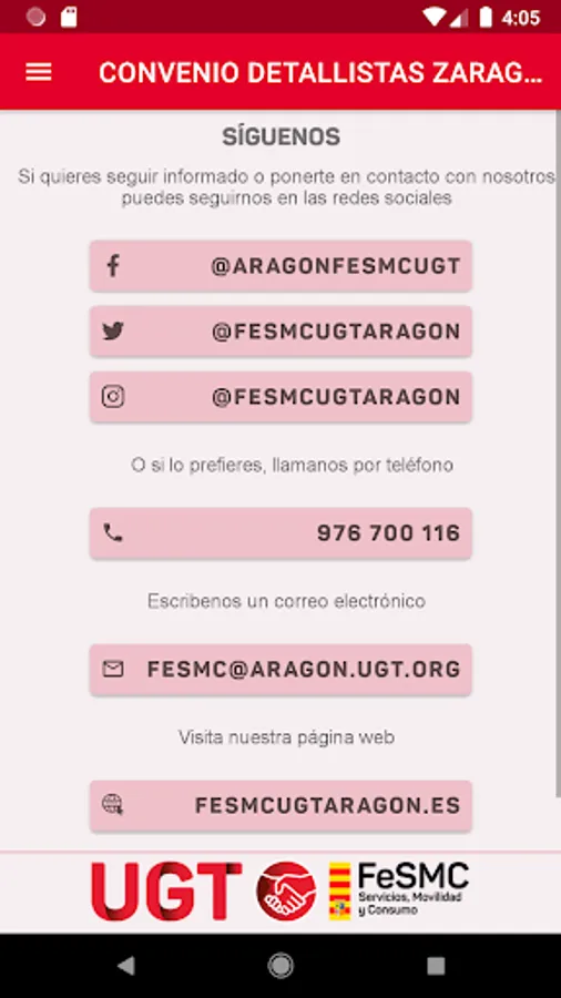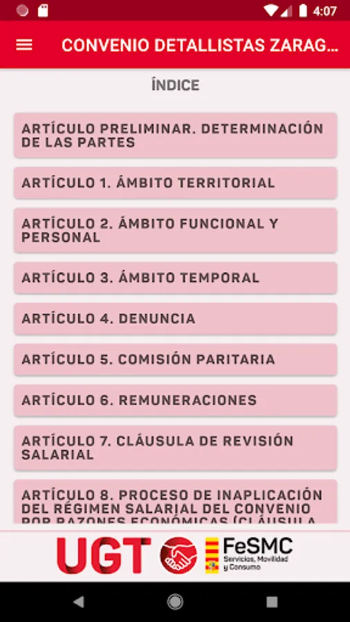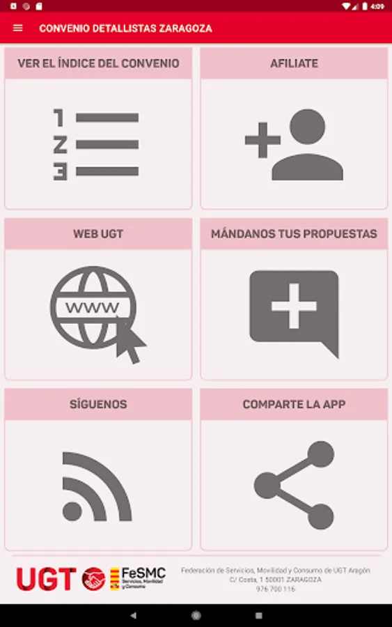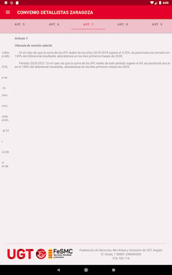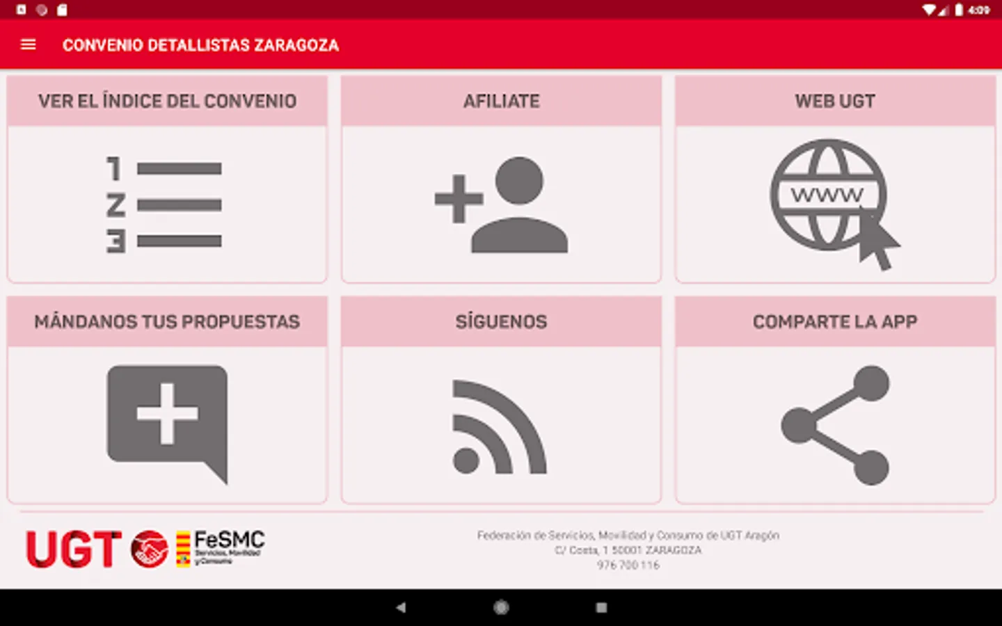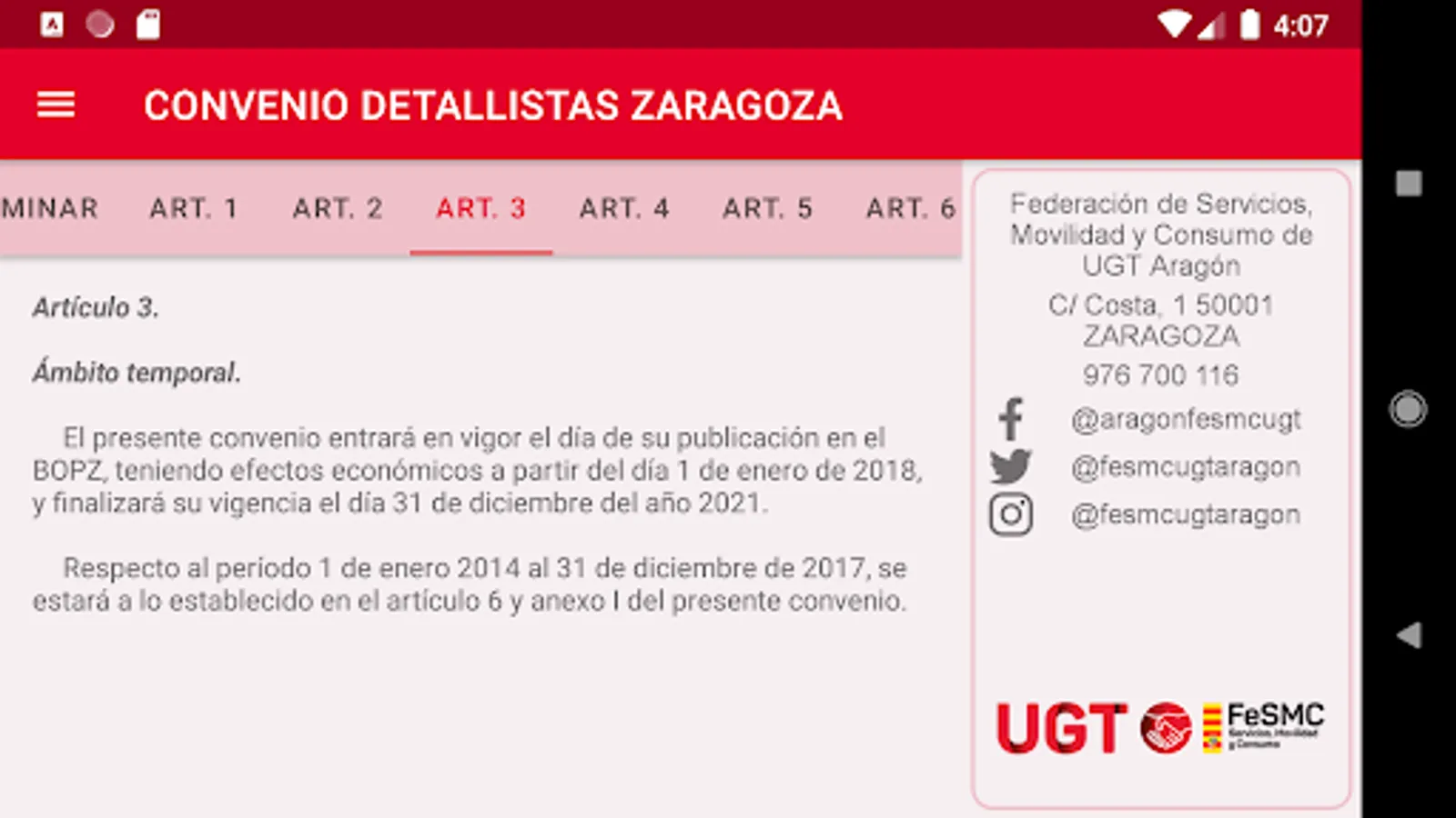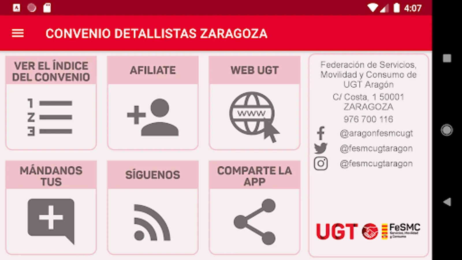 App created by Datasah for UGT Fesmc Aragón, which reproduces the text of the PROVINCIAL COLLECTIVE AGREEMENT FOR THE RETAIL AND SELF-SERVICE FOOD SECTOR OF ZARAGOZA, published in the Official Gazette of the province of (No. 214, of September 16, 2020) .