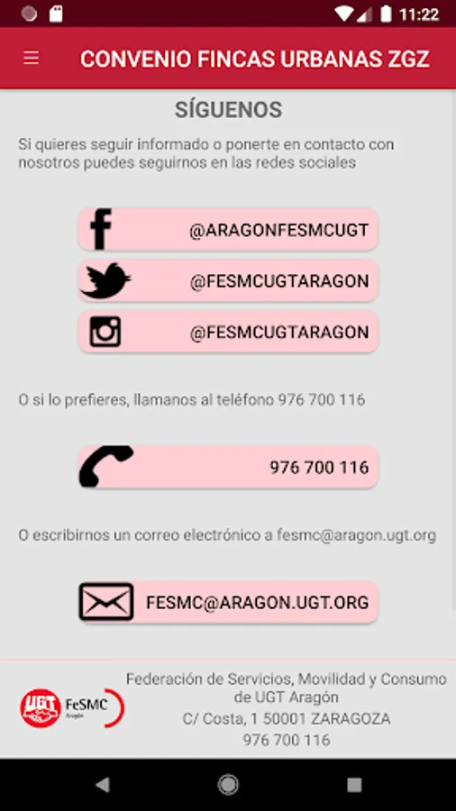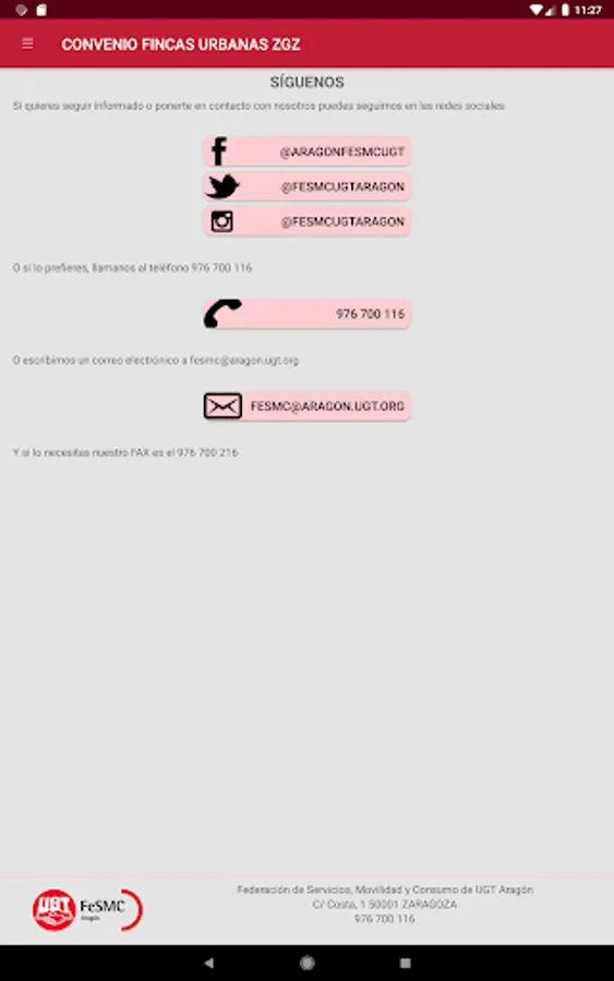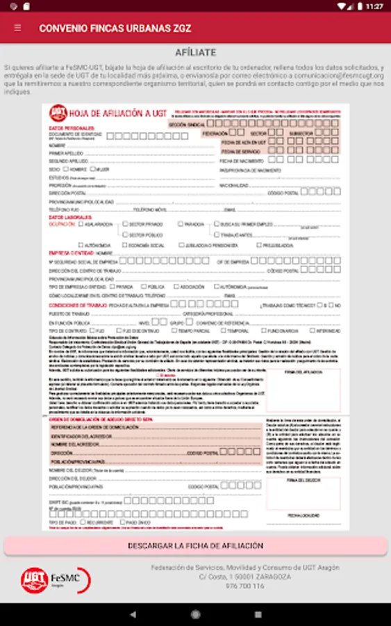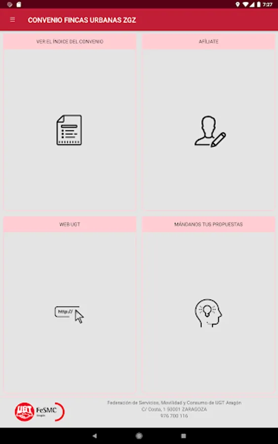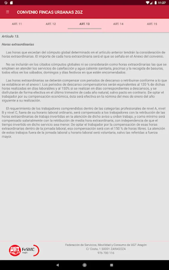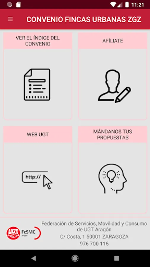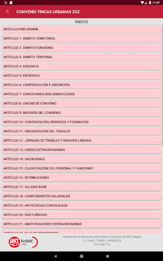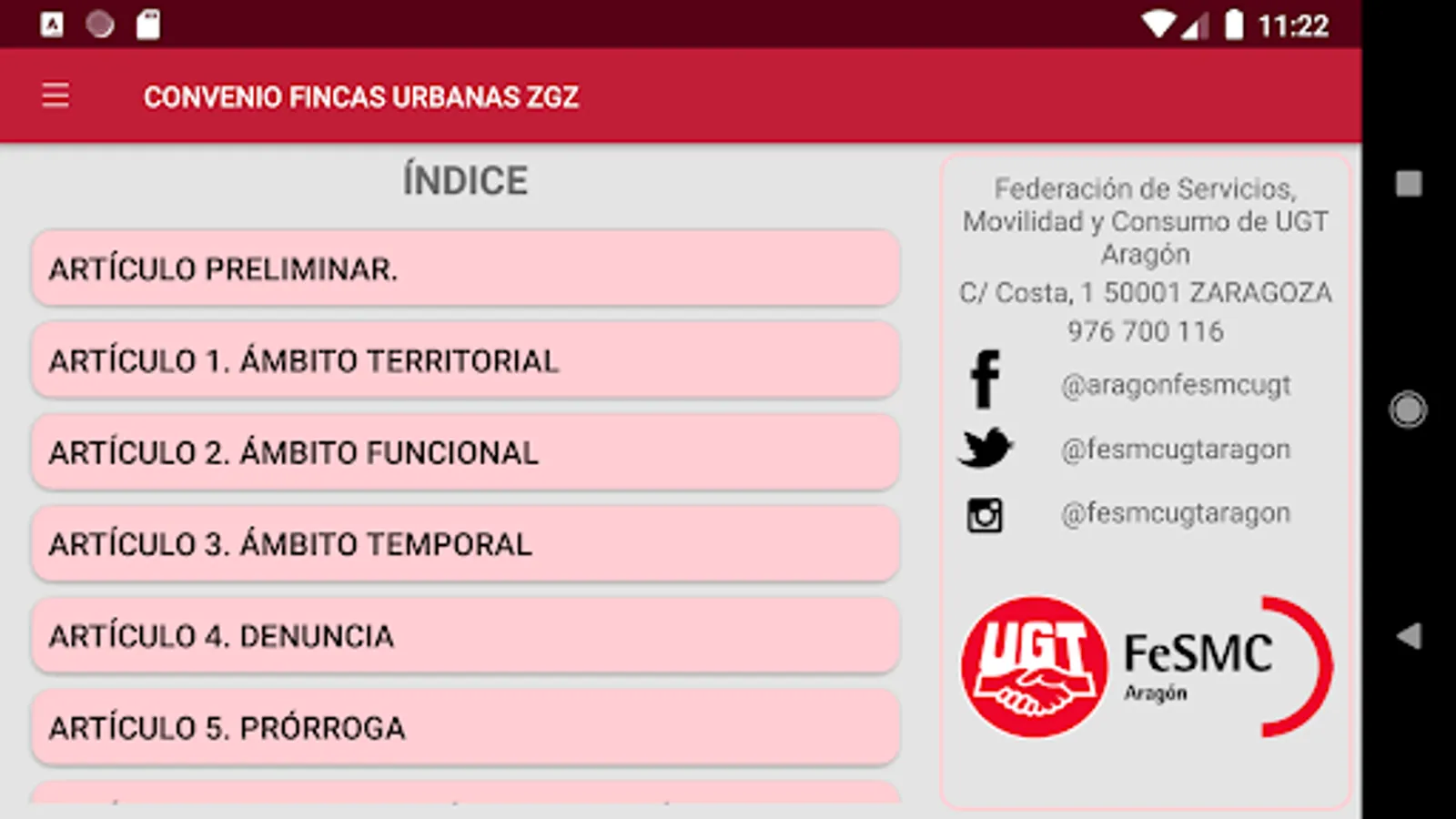 App created by Datasah for UGT Fesmc Aragón, which reproduces the text of the Collective Agreement for the Zaragoza Urban Farms sector 2021-2024, published in the Official Gazette of the province of Zaragoza (no. 193, of August 24, 2021) .