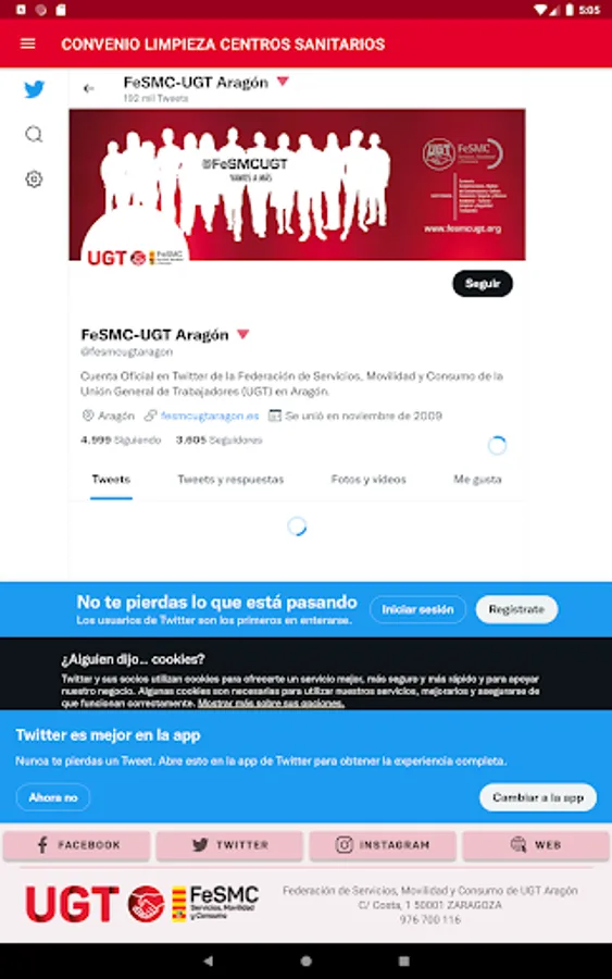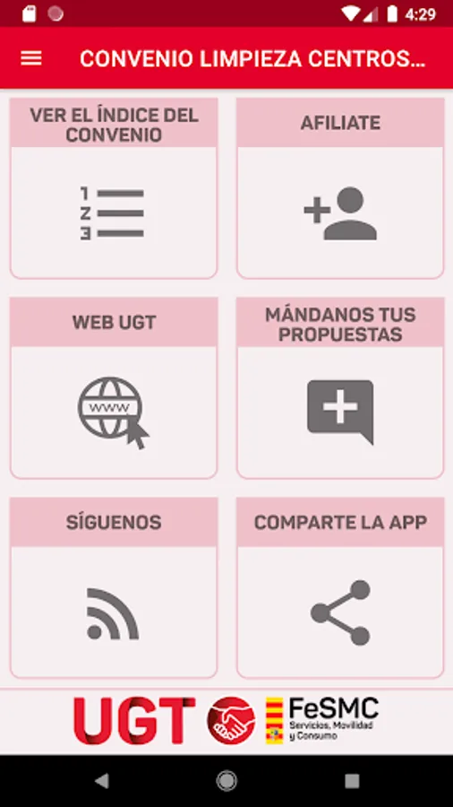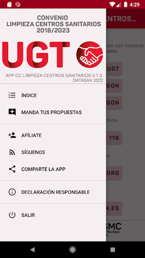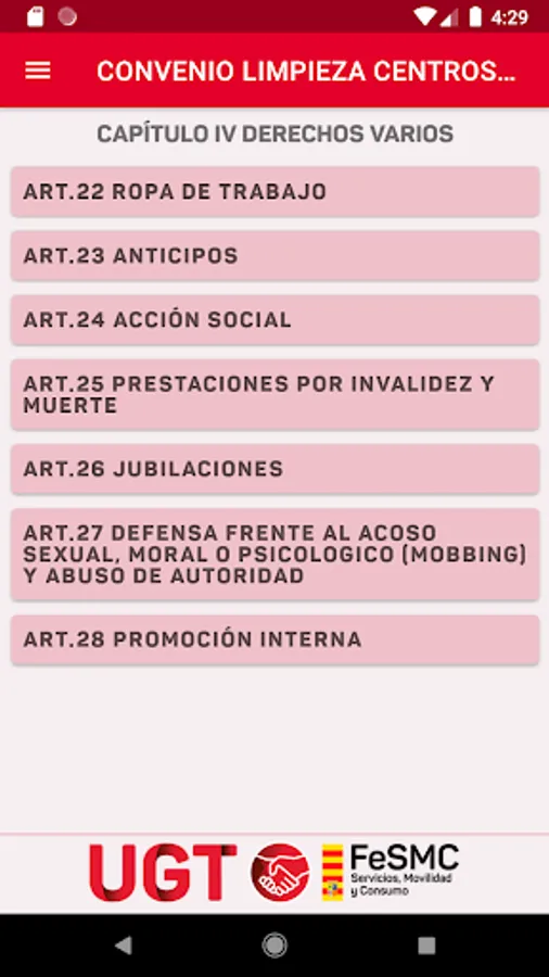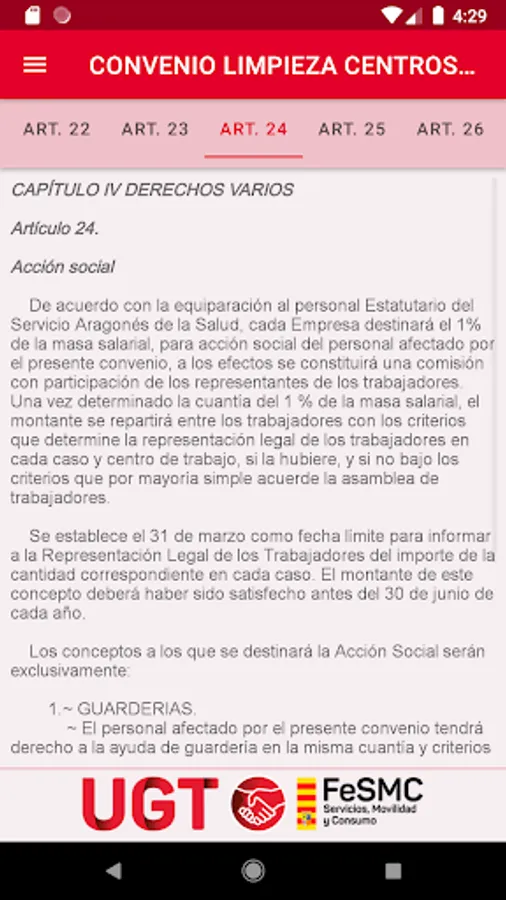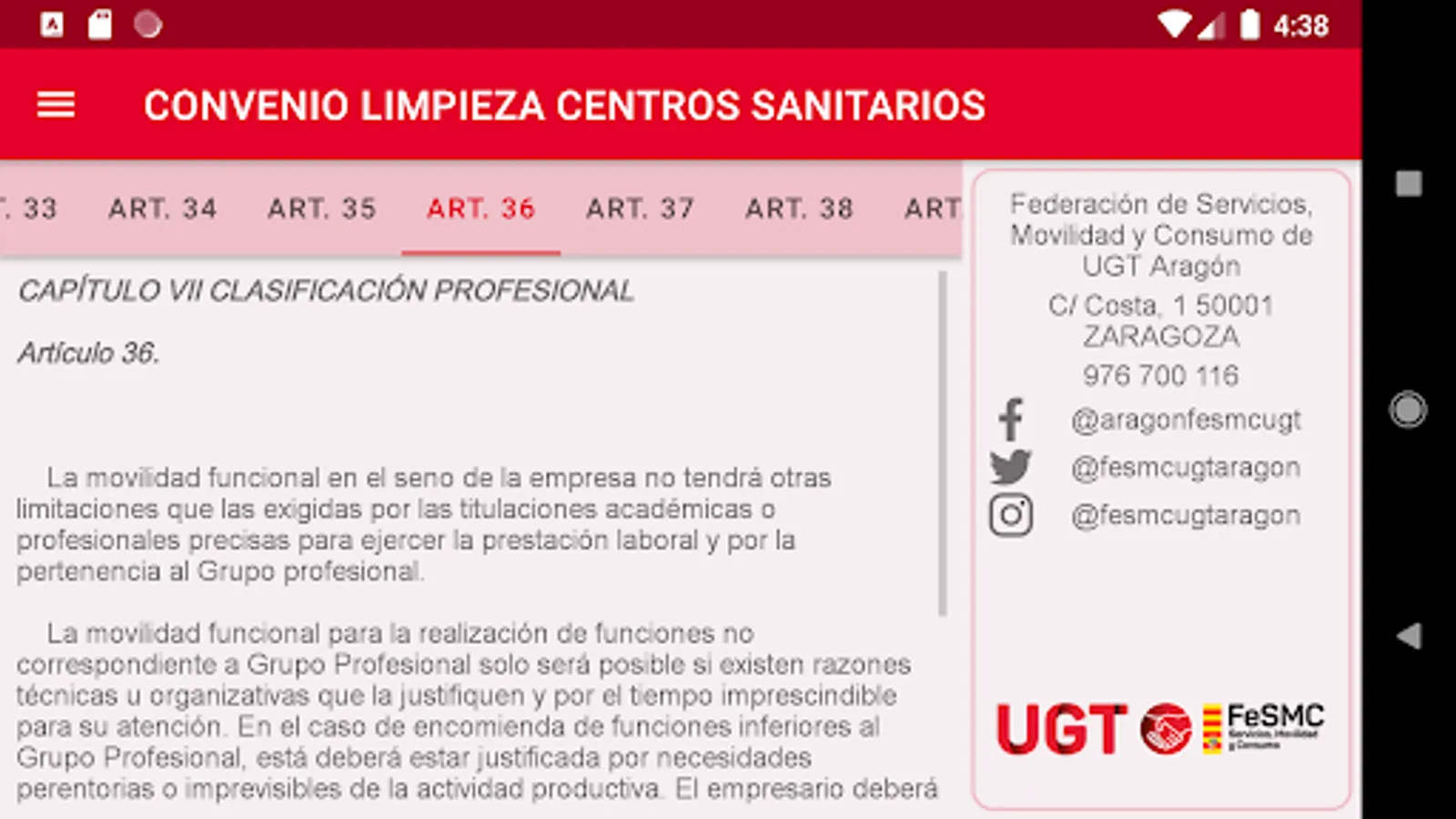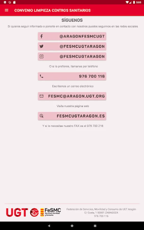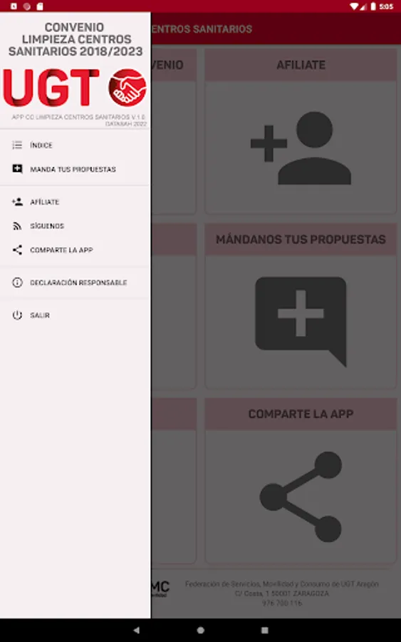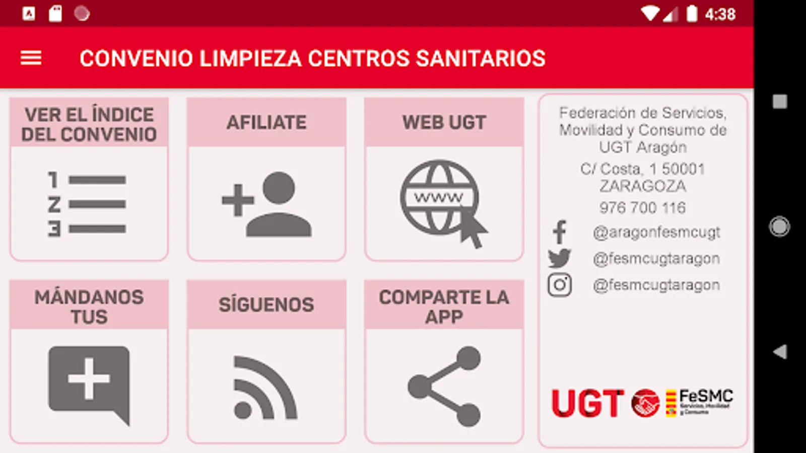 App created by Datasah for UGT Fesmc Aragón, which reproduces the text of the Collective Agreement for cleaning health centers in Aragón 2018-2023, published in the Official Gazette of Aragón (no. 88, of May 10, 2022).