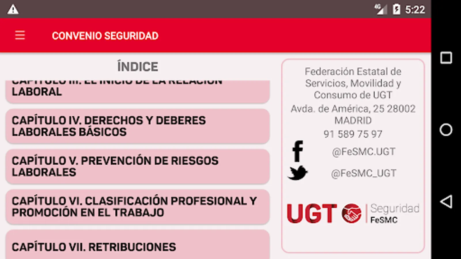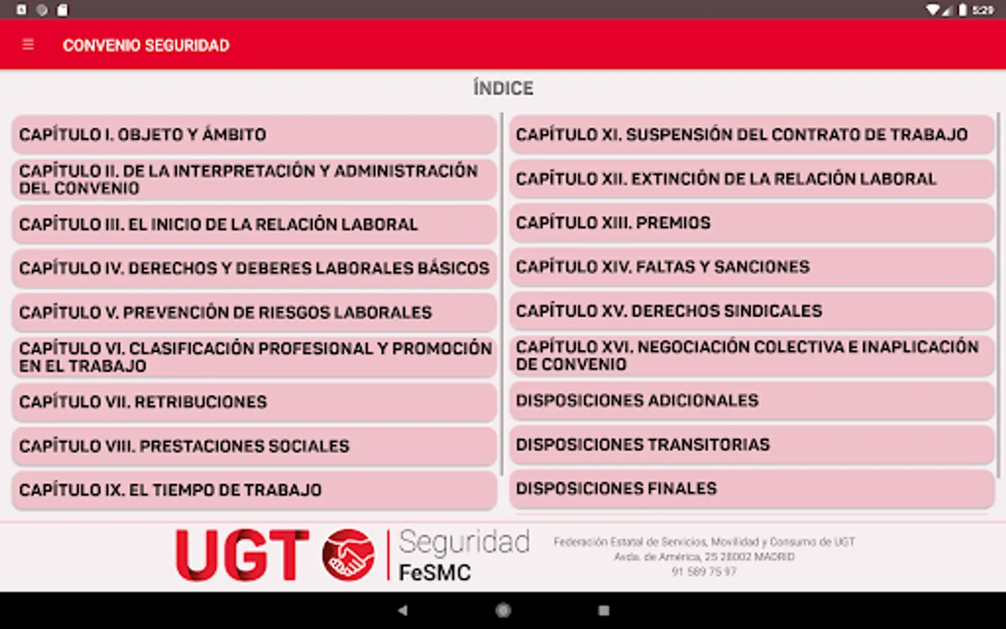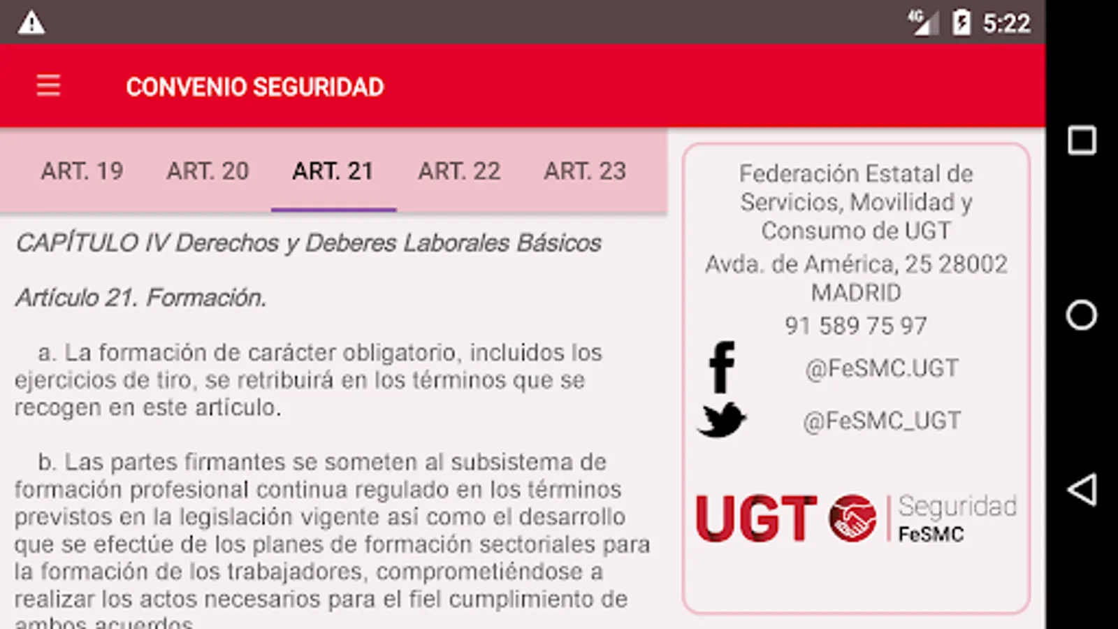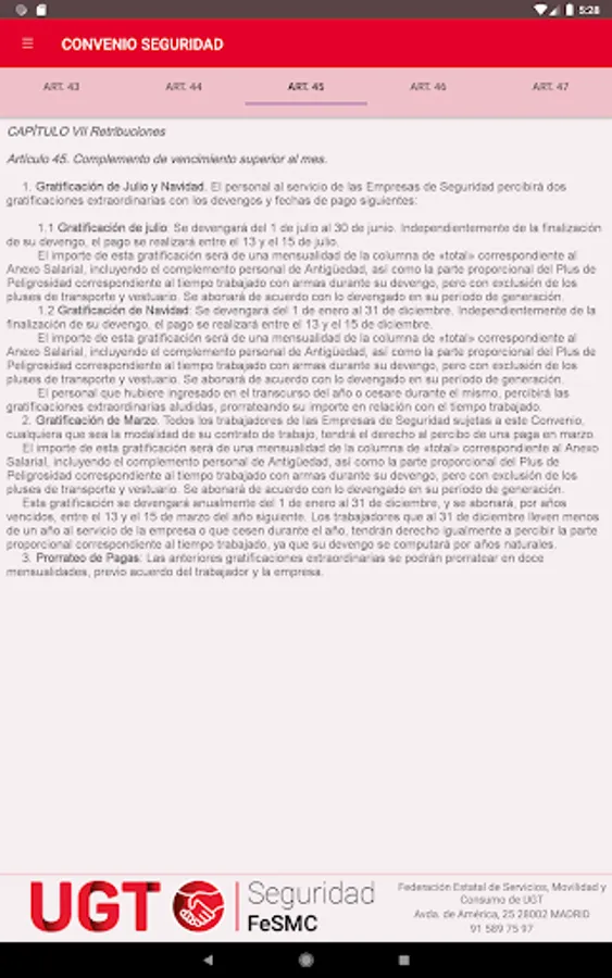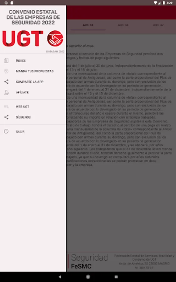 App created by Datasah for UGT Fesmc Aragón, which reproduces the text of the State Security Companies Agreement 2022, published in the Official Gazette of Aragón (no. 10, of January 12, 2022).
