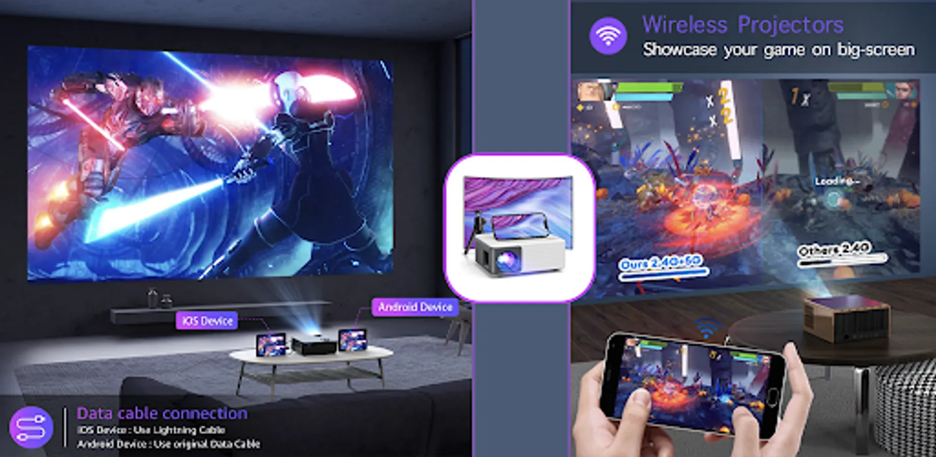 HD Movie Projector Supported 1080P HD Cast Tv makes you enjoy home entertainment such as favorite movies, TV shows, video games, pictures, music anywhere with family or friends. Equipped with 1080P FHD supported native 720P resolution and contrast ratio, built-in speaker, adjustable screen from 30" to 200", HD Movie Projector - Cast Tv turns your room and yard into a private movie theater.