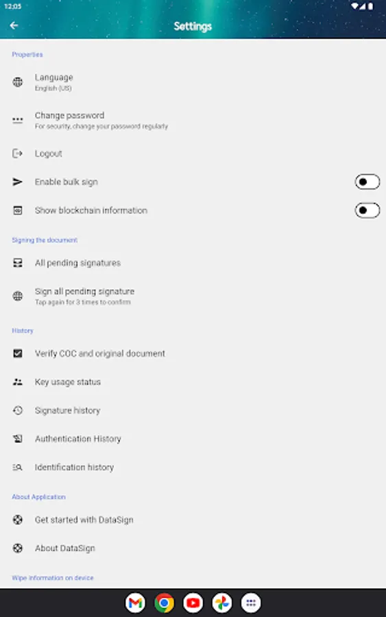 - This mobile application is 100% working on Blockchain protocol. Unless the public key, it does not connect or send any information to DataSign web system. Therefore, supporting multiple deployment of DataSign Web system without app modification.
