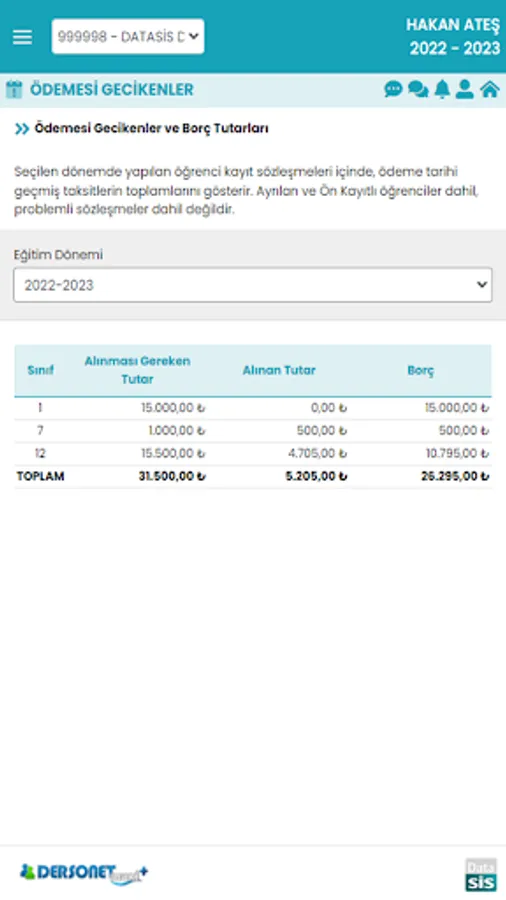 Notifications sent from Dersonet Maxi main modules are both seen with the notification icon in the application and displayed in the application so that they can be read in detail later.