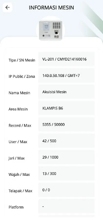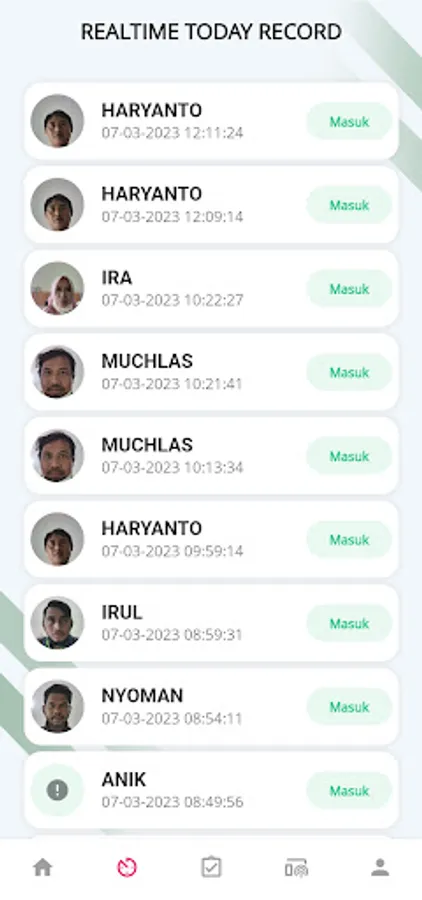 Application for monitoring attendance in real time from the BioFinger attendance machine