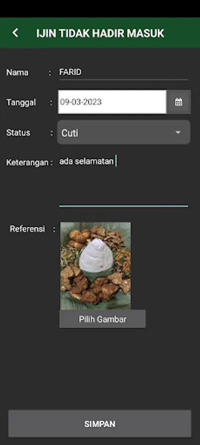 In addition, to make a transaction to ask for permission for absence, tardiness or forgetting to be absent, by attaching a description of the reason for the permit supporting image.
