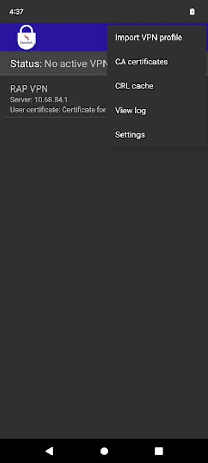 - VPN server certificates are verified against the CA certificates pre-installed or installed by the user on the system. The CA or server certificates used to authenticate the server can also be imported directly into the app.
